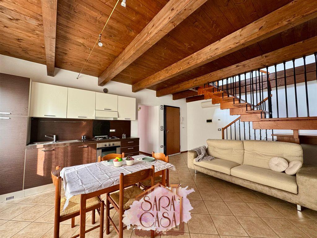 In zona centralissima, si propone elegante appartamento al secondo ed ultimo piano di una palazzina recente, disposto su due livelli. L'immobile, in buono stato di conservazione e completamente arredato, si compone di: ingresso su ampio soggiorno con angolo cottura, disimpegno, camera da letto matrimoniale e spazioso bagno finestrato con box doccia. Scala di collegamento in legno che conduce al piano superiore mansardato, costituito da: camera da letto singola, due luminosi vani serviti di lucernai e secondo bagno finestrato con box doccia. Concludono la proprietà due cantine al piano terra. Cortile condominiale con deposito bici comune. Impianti autonomi e aria condizionata. Libero subito.