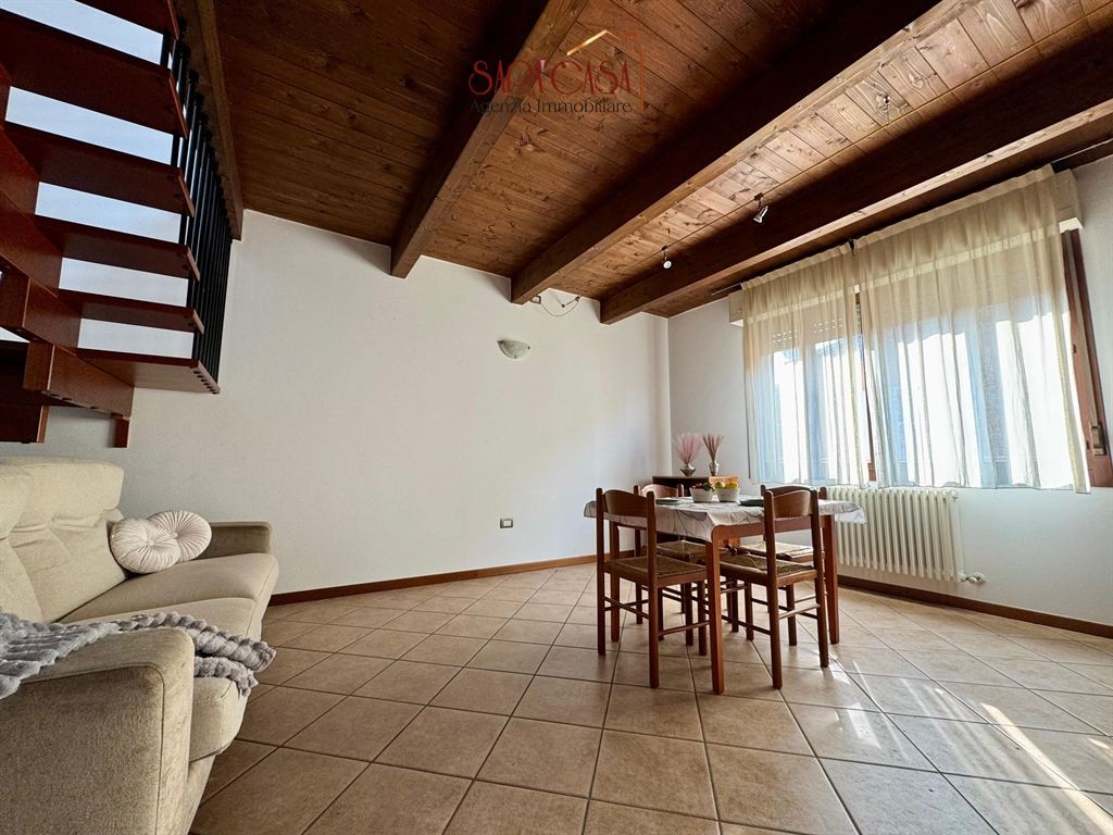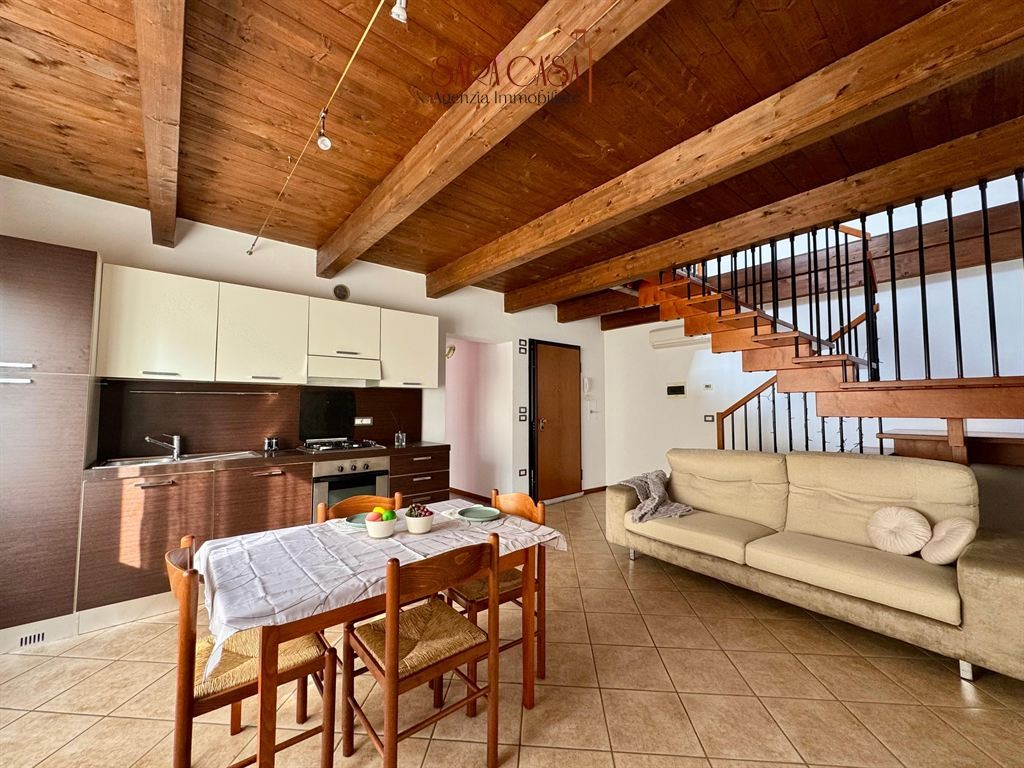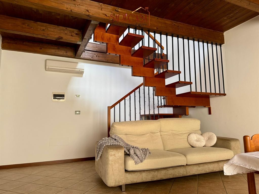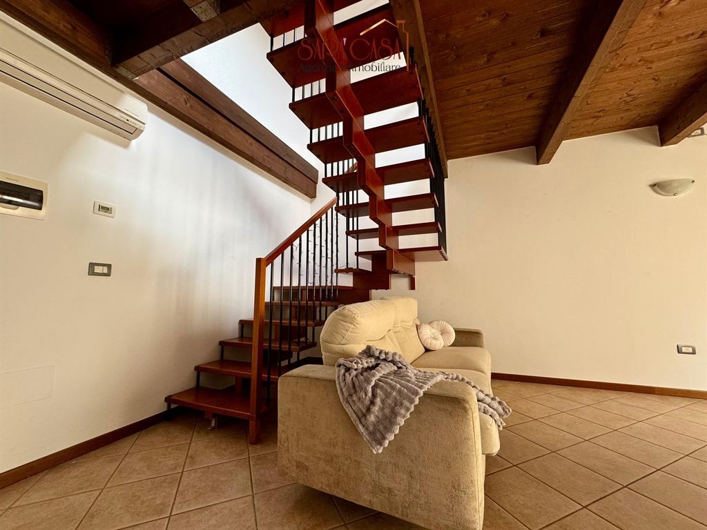In zona centralissima, si propone elegante appartamento al secondo ed ultimo piano di una palazzina recente, disposto su due livelli. L'immobile, in buono stato di conservazione e completamente arredato, si compone di: ingresso su ampio soggiorno con angolo cottura, disimpegno, camera da letto matrimoniale e spazioso bagno finestrato con box doccia. Scala di collegamento in legno che conduce al piano superiore mansardato, costituito da: camera da letto singola, due luminosi vani serviti di lucernai e secondo bagno finestrato con box doccia. Concludono la proprietà due cantine al piano terra. Cortile condominiale con deposito bici comune. Impianti autonomi e aria condizionata. Libero subito.