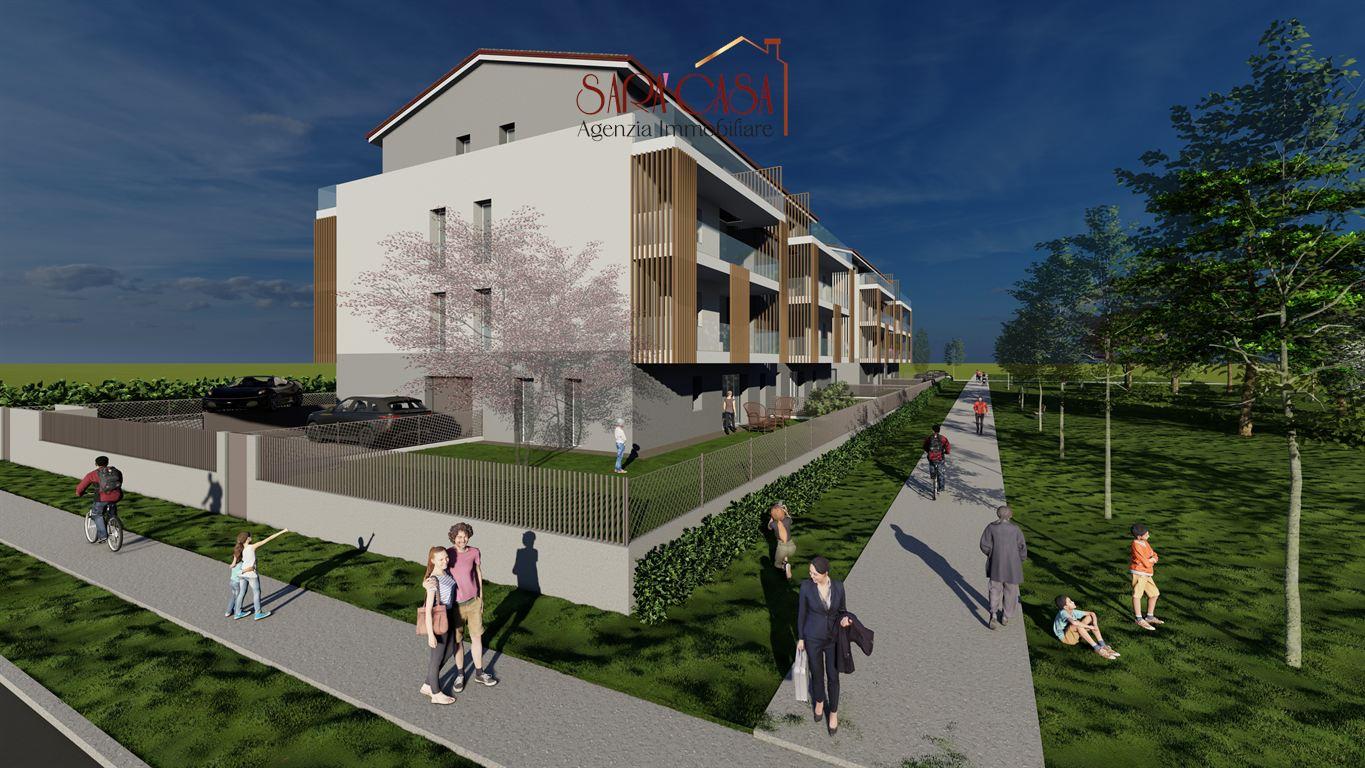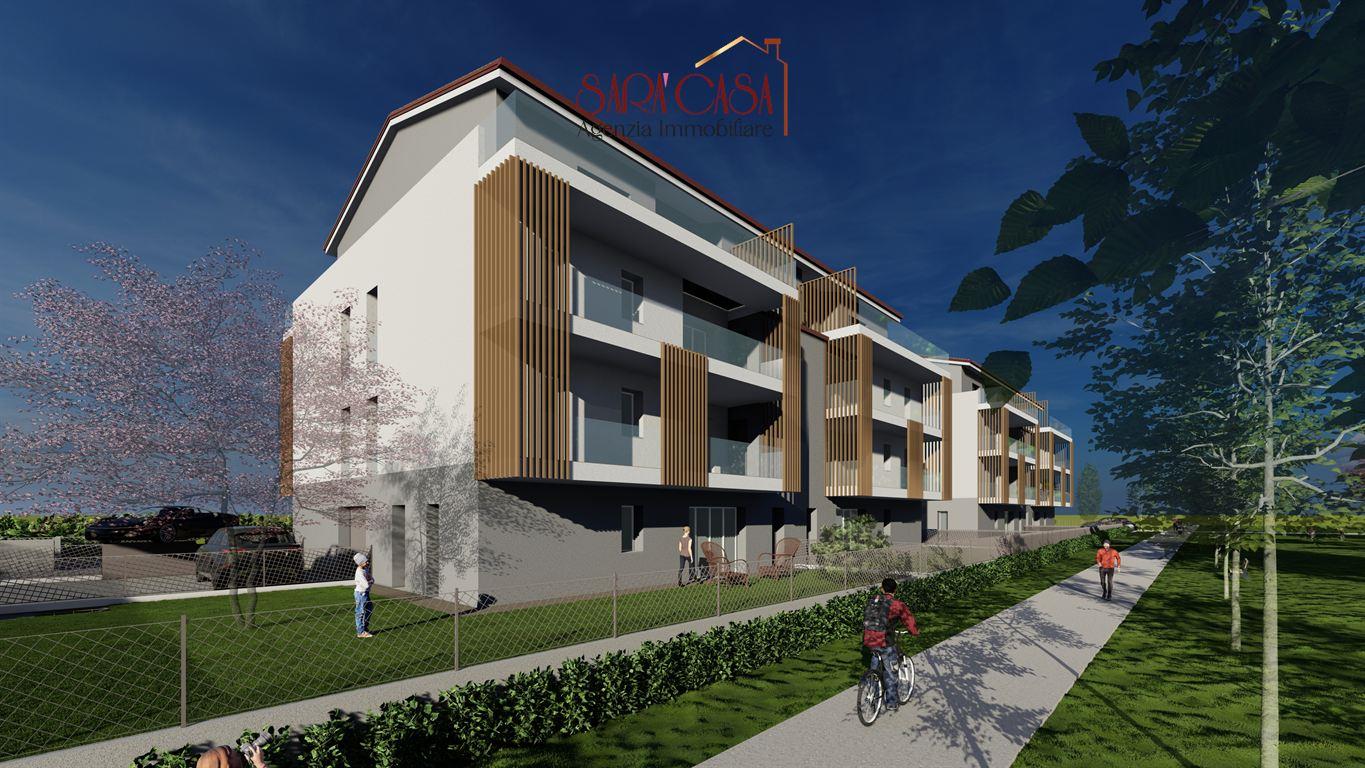 In zona comoda a tutti i principali servizi, sta prendendo vita una palazzina di nuova costruzione. Si propone appartamento al piano terra, una soluzione perfetta per chi desidera uno stile di vita sereno ma con tutte le comodità. Attraverso il vano condominiale, si accede all'immobile composto di: ingresso su ampio soggiorno con cucina a vista, disimpegno notte, due camere da letto (una matrimoniale e una singola) e un bagno.