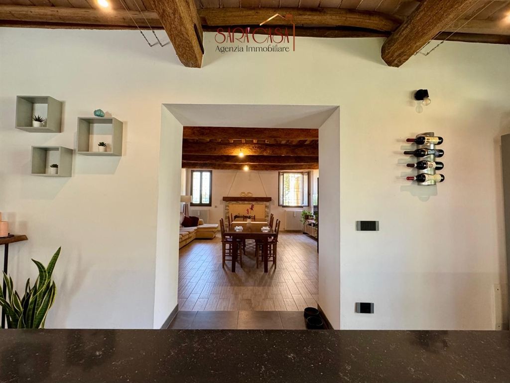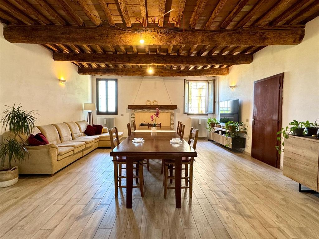 Se cerchi spazio, libertà e il fascino della natura, questa casa indipendente è il tuo angolo di paradiso. Situata nelle prime campagne di Alfonsine, la proprietà è circondata da un parco privato di 5.000 mq. L’abitazione, caratterizzata da ambienti ampi e luminosi con suggestivi soffitti in legno con travi a vista, si sviluppa su due livelli. Al piano terra ci accoglie un ingresso che conduce a un soggiorno generoso con cucina a vista e affaccio diretto su piacevole pergola, sala da pranzo con camino, una stanza attualmente adibita a studio e bagno finestrato. Al piano superiore, che presenta finiture originarie ma ben tenute, troviamo un disimpegno armadiabile con balcone, due spaziose camere da letto, bagno finestrato con vasca e due ampi vani attualmente allo stato grezzo. Completano la proprietà una caratteristica legnaia, due servizi/cantine e un portico.