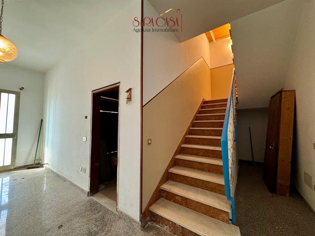 Porzione di casa con sviluppo su due piani e capiente sottotetto allo stato grezzo. L'immobile, con finiture prevalentemente originarie dell'anno di costruzione e predisposto per realizzare due unità abitative, si compone al piano terra di: ampio ingresso, cucina semi-abitabile, salone/camera da letto e bagno finestrato con box doccia. Scala di collegamento al piano primo con: soggiorno, cucina con accesso al terrazzo, due spaziose camere da letto di cui una con cabina armadio e l'altra con accesso al terrazzo con affaccio sulla corte interna esclusiva e bagno finestrato con doccia. Completano la proprietà al piano terra ampio loggiato, corte esclusiva con ripostigli annessi e garage. Consegna in tempi brevi.