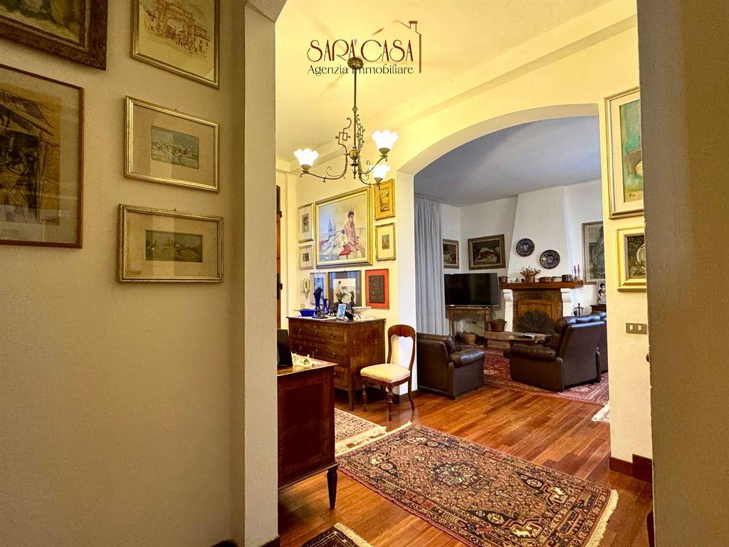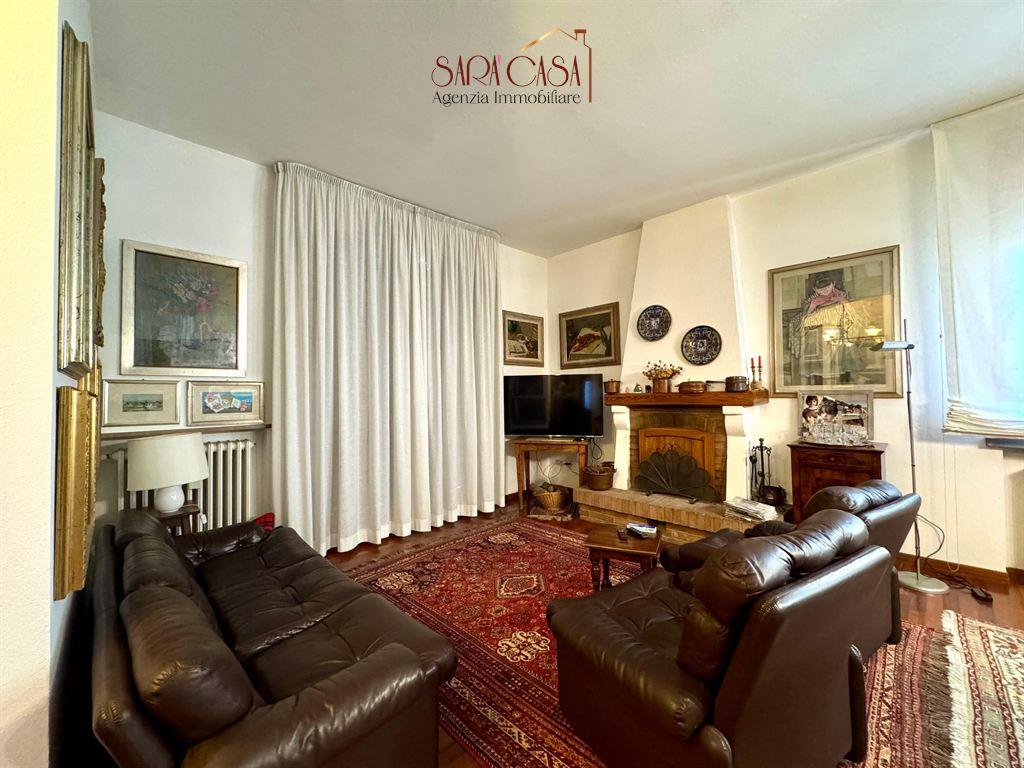 In posizione strategica e ben collegata a tutti i principali servizi, si propone una casa semindipendente con corte esclusiva e sviluppo su due livelli. L'immobile, in buono stato di conservazione, si compone di: accogliente ingresso, ampio soggiorno con camino e sala da pranzo, cucina abitabile, studio e bagno finestrato con box doccia. Elegante scala in legno di collegamento al primo piano, dove troviamo: quattro ampie camere da letto, una camera singola e secondo bagno finestrato con la vasca. Concludono la proprietà al piano terra un vano servizio con camino disposto su due piani, capiente e funzionale, e spazioso garage. Ulteriore vano ad uso caldaia nella corte esterna, utilizzabile anche come deposito. Consegna da concordare.